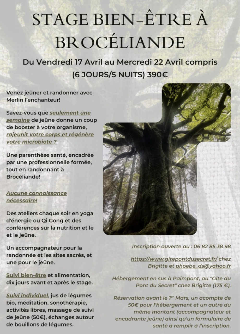 Ce stage se déroule au sein de la forêt mythique de Brocéliande, où les énergies sont propices aux connexions qui nous attendent. La majorité du stage est au grand air, et nous